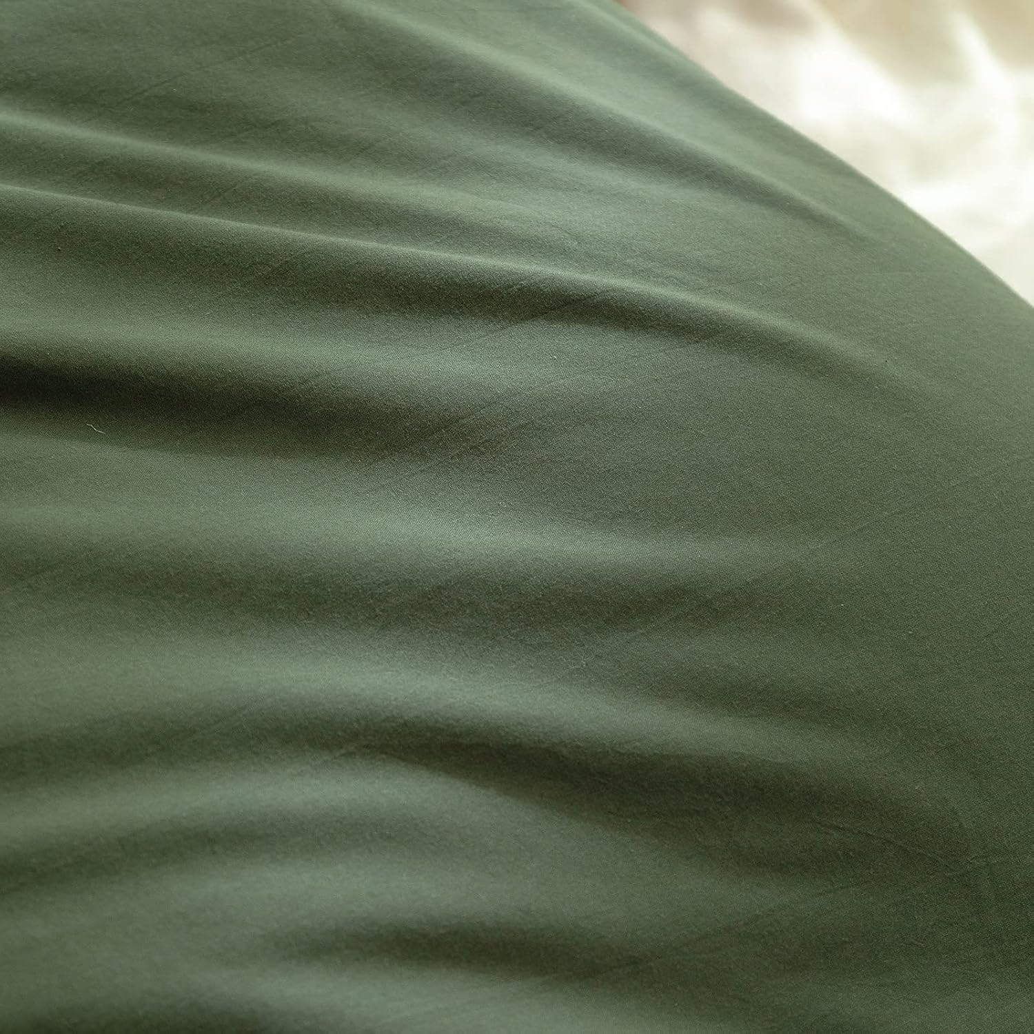 100% Washed Cotton Linen Feel Super Soft Comfortable Chic Lightweight 2 PCs Home Bedding Set Solid Olive Green Twin/Twin XL