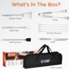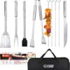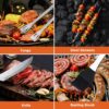 GREAT GRILL TOOL SET – Not only does it come with all necessary tools like spatula, tongs, grill fork, and basting brush but it also comes with steel skewers that is up to the task of getting this job done quickly and efficiently.
