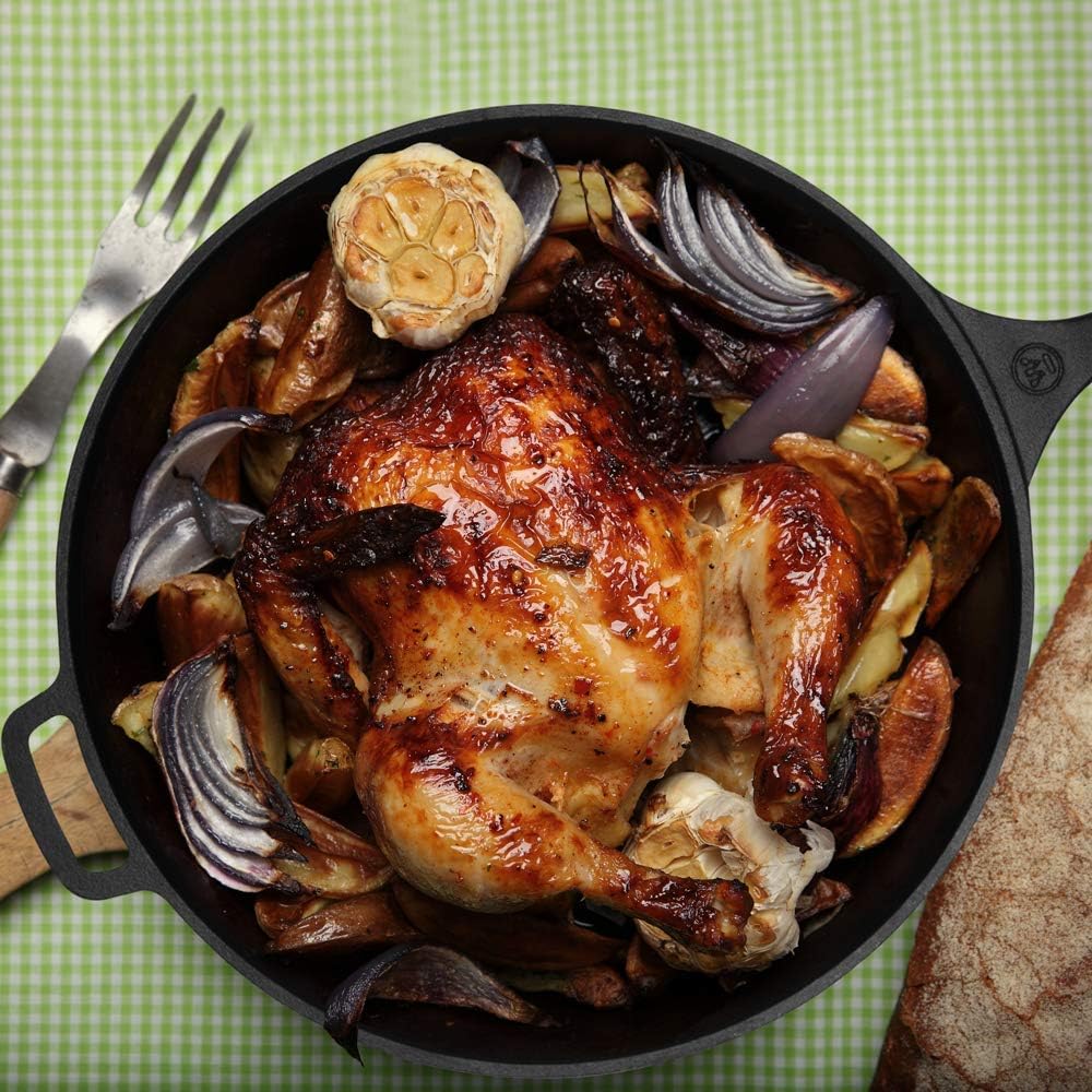 - STORE EASILY: This COMMERCIAL CHEF skillet cast iron features a hook hole on the handle for easy hanging in your kitchen or pantry. Store this iron cast skillet like the pros with and keep it handy and available when you need it.