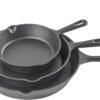 - 3 SKILLETS, 3 SIZES: Get more for your money with this COMMERCIAL CHEF 3-piece cast iron skillet set. Enjoy an 8-inch, 10-inch and 12-inch pre-seasoned round cast iron pan at a budget-friendly price!
