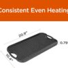 VERSATILE GRIDDLE—This COMMERCIAL CHEF cast iron griddle (20.9” x 10.4” x 0.79”) has two sides to help you make delicious meals. The ribbed side is ideal for chicken and steaks and other meats while the flat side is perfect for bacon, eggs, pancakes and more.