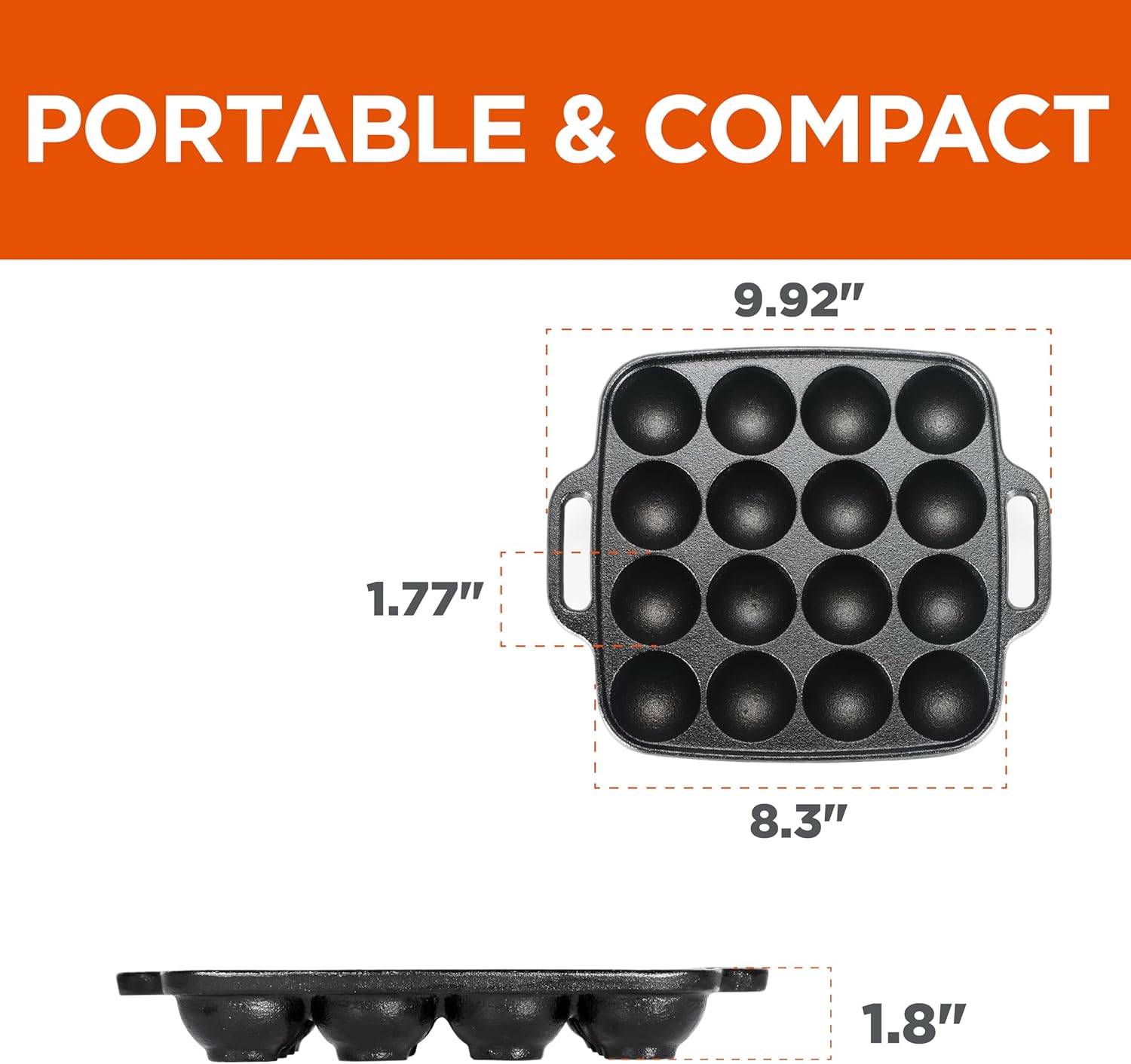 - Use Anywhere: This cast iron aebleskiver pan (4.2 lbs.) can be used on gas or electric, stoves, grills & even over campfires. Our cake pop pan includes two convenient cast iron side handles.