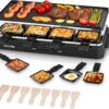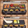- Healthy & Easy Cleanup – Enjoy healthier cooking with the non-stick surface of this raclette machine, allowing you to use less oil for optimal non-stick results. Cleanup is a breeze thanks to the non-stick coating on the top plate and 8 individual raclette pans, which are dishwasher-safe, so you can spend more time enjoying your food.
