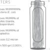 • Protects against 99.999999% of bacteria (including E.coli, Salmonella), 99.999% of parasites (including Giardia and Cryptosporidium), 99.999% of microplastics, silt, sand, and cloudiness