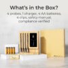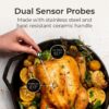 - Four Probes: Each probe features dual temperature sensors, allowing you to monitor both the internal meat temperature (up to 212°F) and the ambient/external temperature (up to 527°F) simultaneously. Each probe has dual sensors that measure the internal temperature within +/- 1°F.