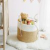 - Unique Appearance: Designed with jute and cotton string and protable handles on the basket,match with wood bead decor. And the basket is lined with a layer of cloth that prevents the twine material from sticking to the object. Minimalistic combined with rustic style, makes the whole flower basket in simple and elegant. Sturdy handles design, easy to move and take away,free awesome practical adorable jute storage bin for daily use.