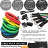 - Get your complete resistance bands set now: You’ll feel 100% satisfaction from the moment you received the exercise bands set. They come with a lightweight carrying bag, a sturdy door anchor, a pair of larger straps and handles for home gym exercise, door exercise, weightlifting, stretch exercise,leg exercise, etc. We are quite sure that you will be super-impressed with the durability, portability, versatility and high quality of our resistance exercise bands.