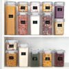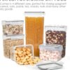 - 4 Size Combinations Fit Your Needs — Our kitchen storage container set comes in 4 different sizes. Includes 6 Tall Container (2.5quart/2.8 liters), 6 Large Containers (1.8quart/2.0 liters), 6 Medium Containers (1.5quart/1.6 liters), 6 Small Containers (0.7quart/0.8 liters). Perfect for storing spaghetti, baking supplies, cereal, flour, sugar, oats, pasta, rice, coffee, tea, snacks, nuts and other dry goods.